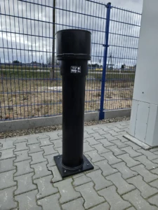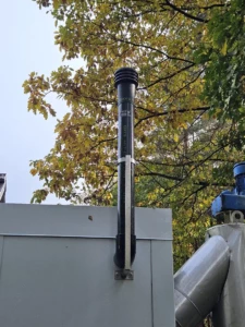 Antyodorowy filtr kominowy wewnętrzny montowany jest bezpośrednio w istniejącym kominie wentylacyjnym przepompowni ścieków. Jego średnica zewnętrza dostosowana jest bezpośrednio do średnicy wewnętrznej istniejącego komina wentylacyjnego dzięki czemu mieści się w jego wnętrzu. Filtr osadzony jest na czole komina dzięki specjalnemu pierścieniowi. Montaż jest nadzwyczaj prosty i nie wymaga demontażu istniejących kominów wentylacyjnych.