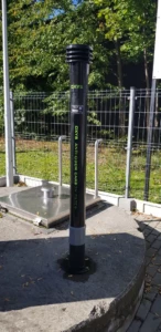 Antyodorowy filtr kominowy solarny montowany jest bezpośrednio w otworze wentylacyjnym (średnica zewnętrza filtra dostosowana jest do tulejowego przejścia szczelnego, nasuwki, mufy, kielicha PVC czy uszczelki czterowargowej) przepompowni ścieków, zbiorników i szamb, lub przy pomocy zintegrowanej z filtrem podstawy (montaż bezpośrednio do pokrywy betonowej).